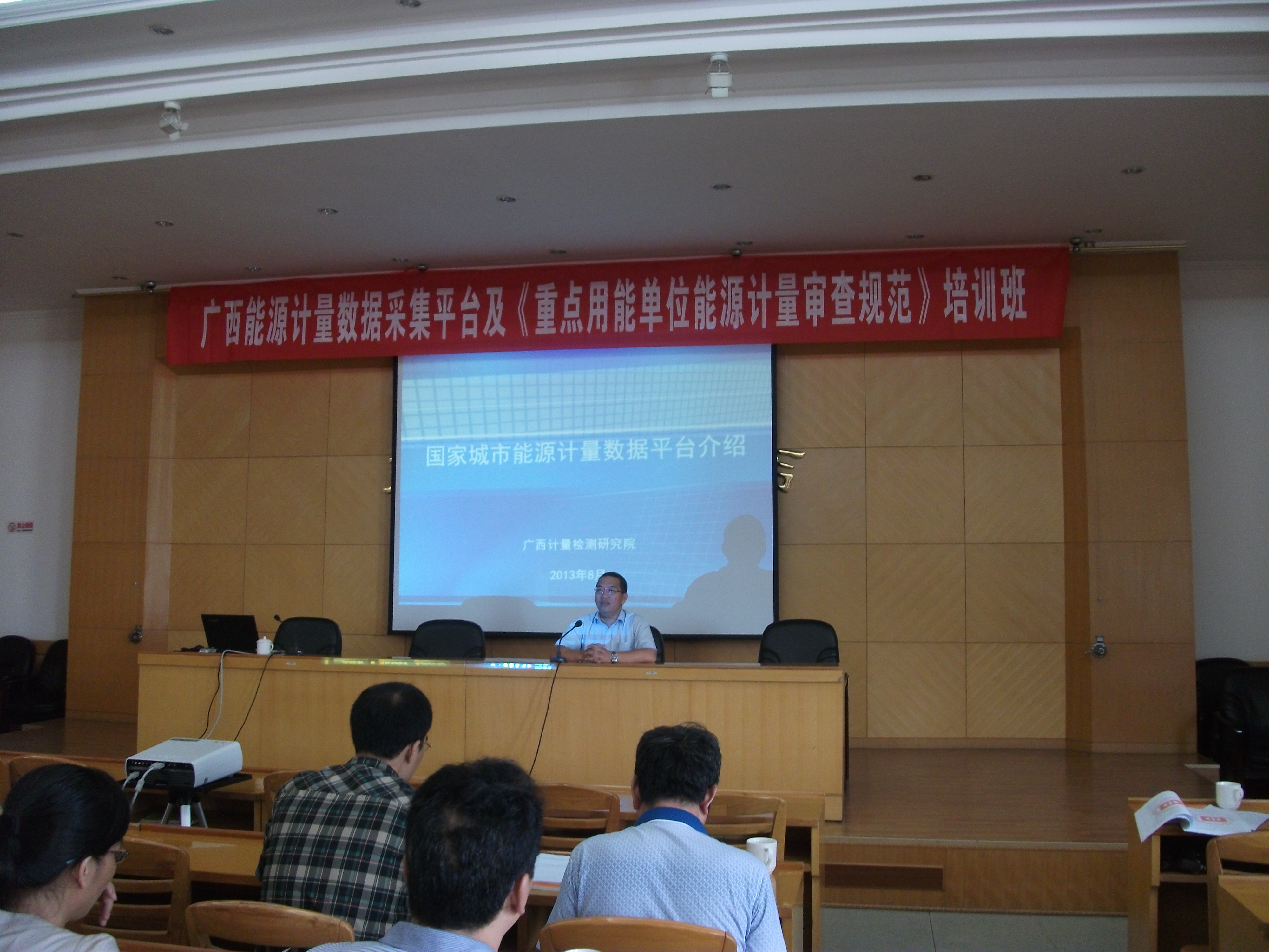 我司已在国家城市能源计量中心(广西)(以下简称广西院)成功部署城市能源计量数据公共平台。为积极推进平台的建设与应用,切实帮助用能企业做好能源计量审查工作,广西院于8月7日至9日举办相关培训班。我司应邀前往做专题培训。